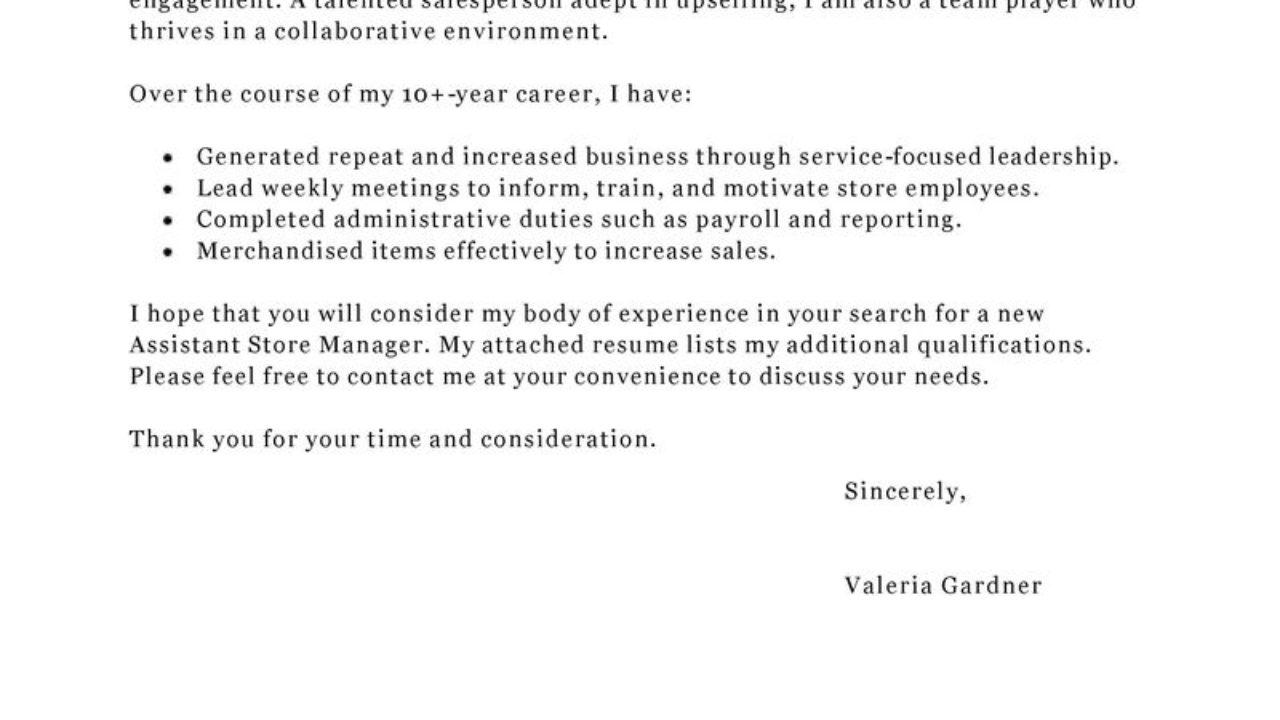 Assistant Store Manager Cover Letter
