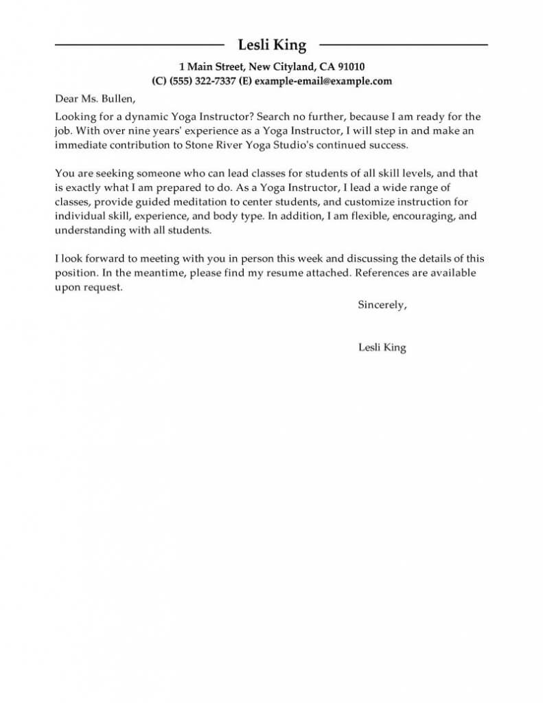 Leading Professional Yoga Instructor Cover Letter Examples
