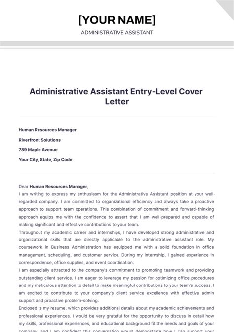 Increase the strength of your cover letter by adding some personality traits. When writing your entry level administrative assistant cover letter use proper nouns to address the hiring managers and avoid using any slang or offensive language. Entry level office assistant resume example with no experience.
