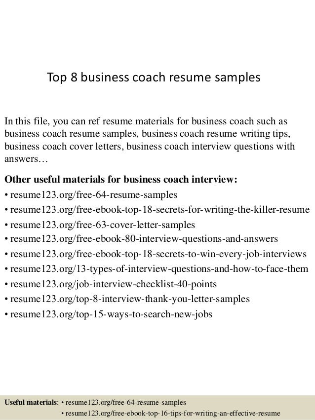 Top 8 Business Coach Resume Samples