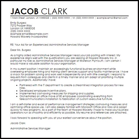 Sample Cover Letter Service Manager