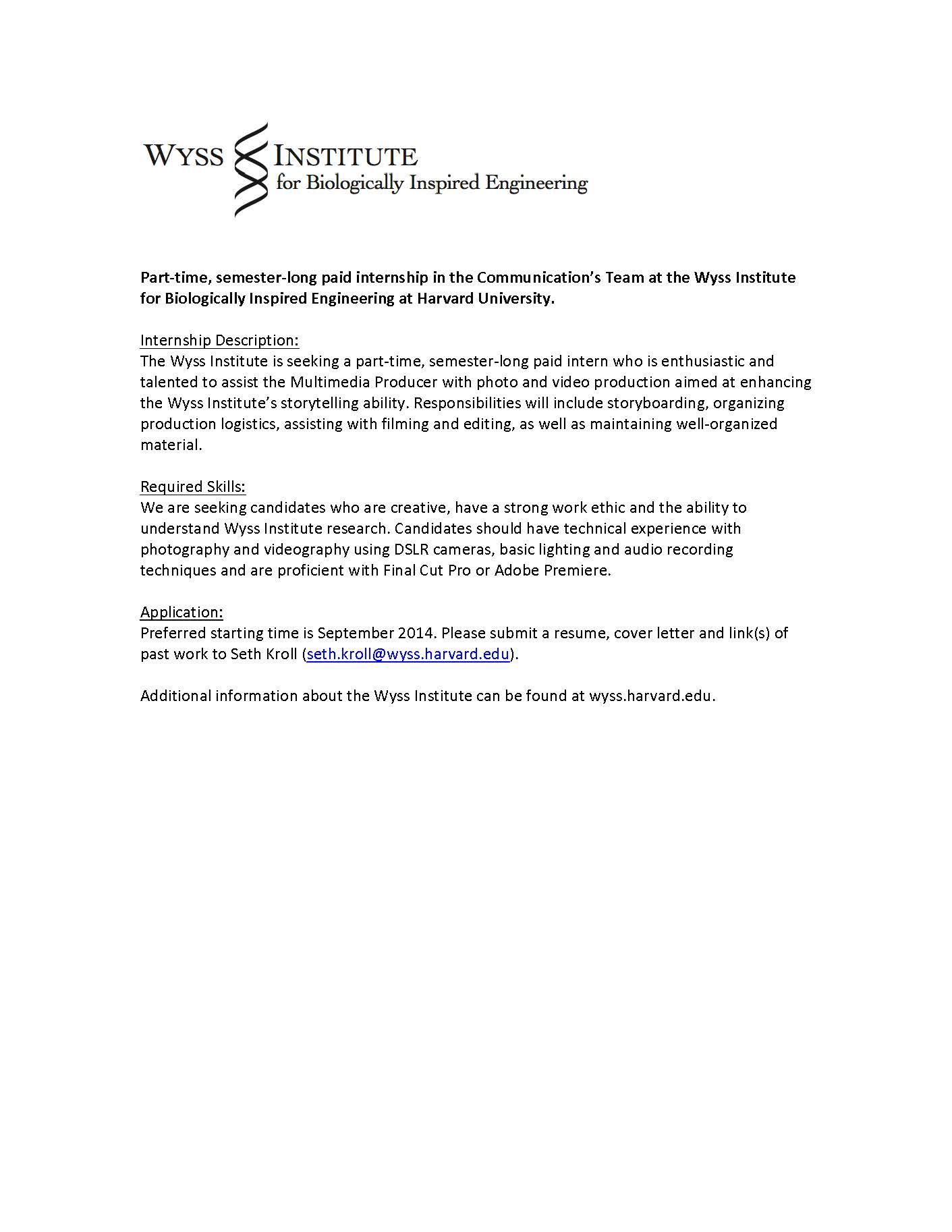 Wyss Institute On Twitter Fall Semester Internship We