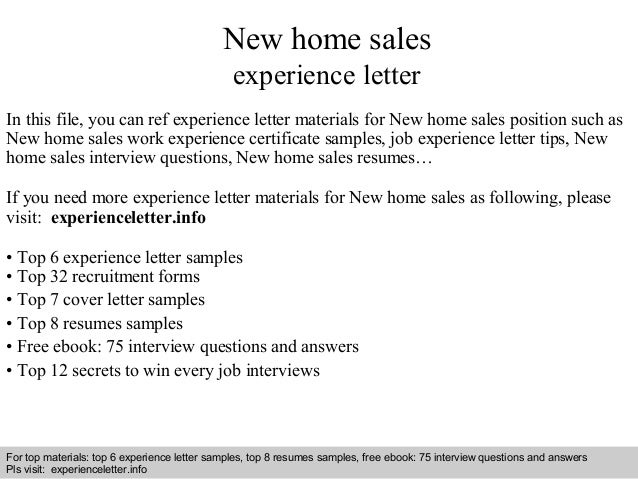 New Home Sales Experience Letter
