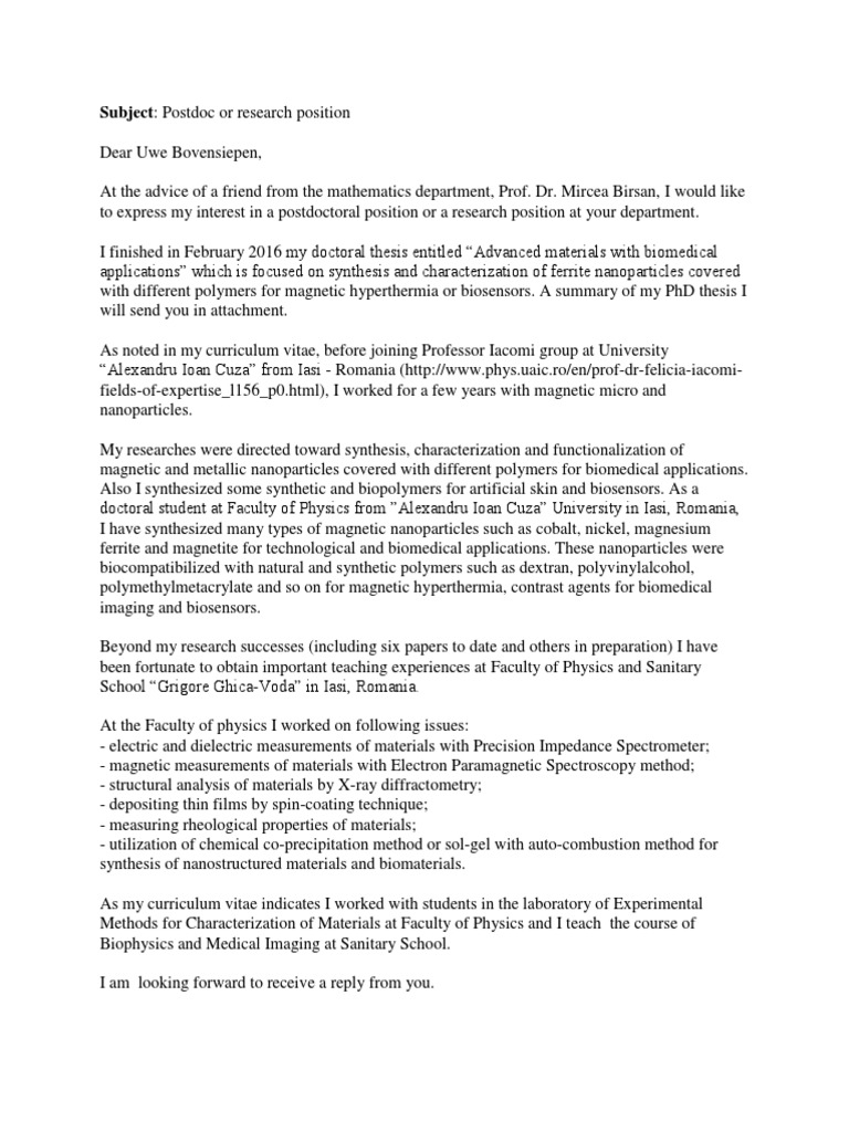 Postdoc Application Cover Letter Sample Resume Profile