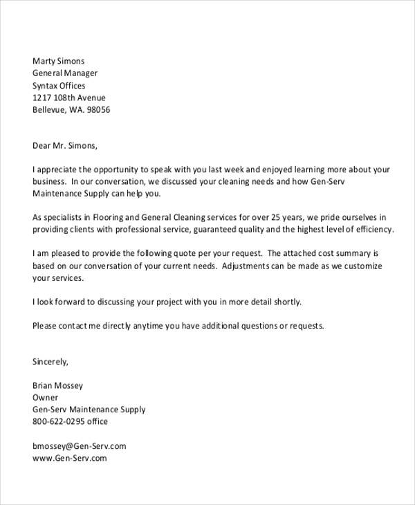 Sample Cover Letter For Quotation To Client