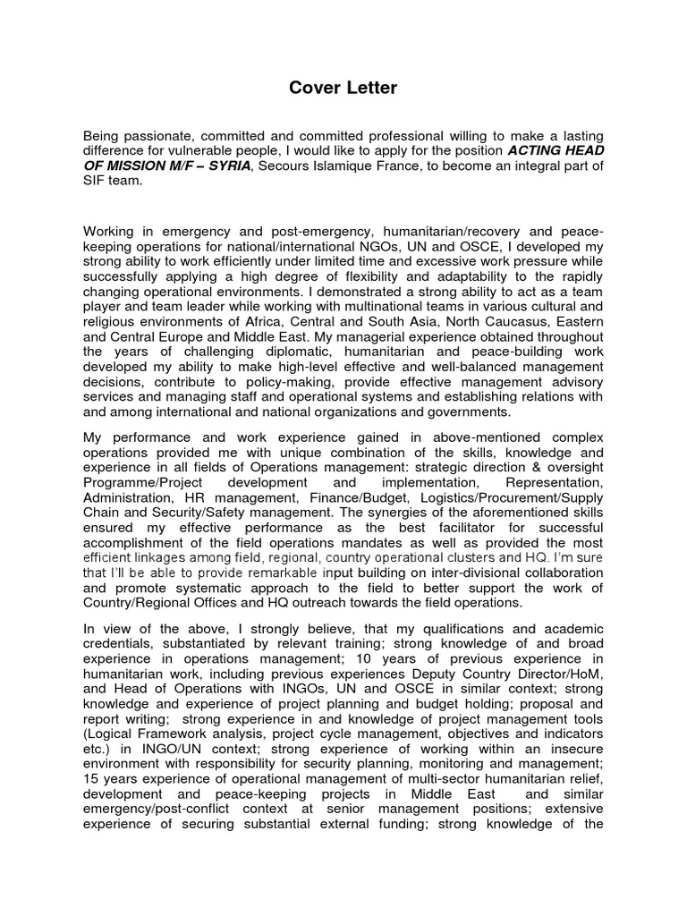 Cover Letter For Humanitarian Job