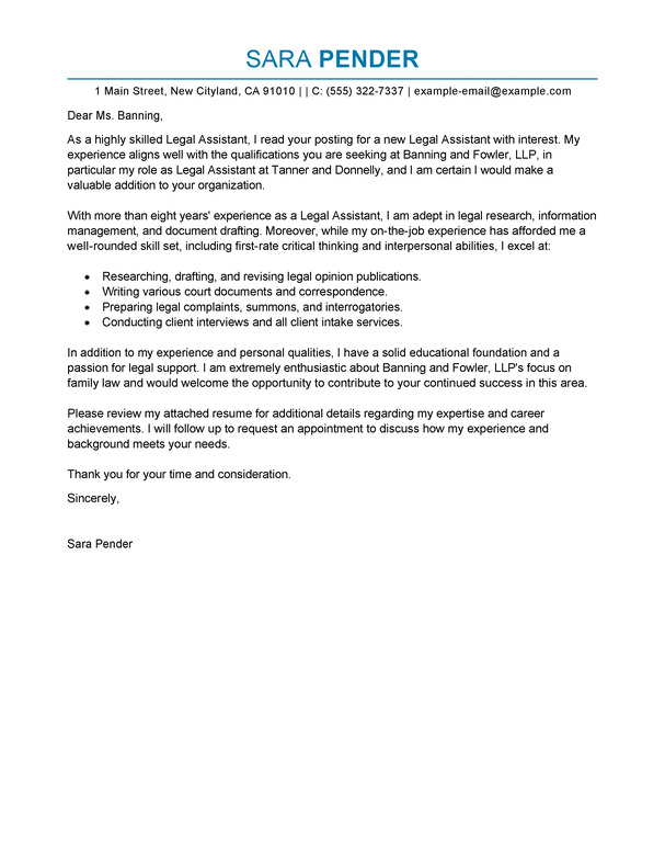 Best Legal Assistant Cover Letter Examples Livecareer