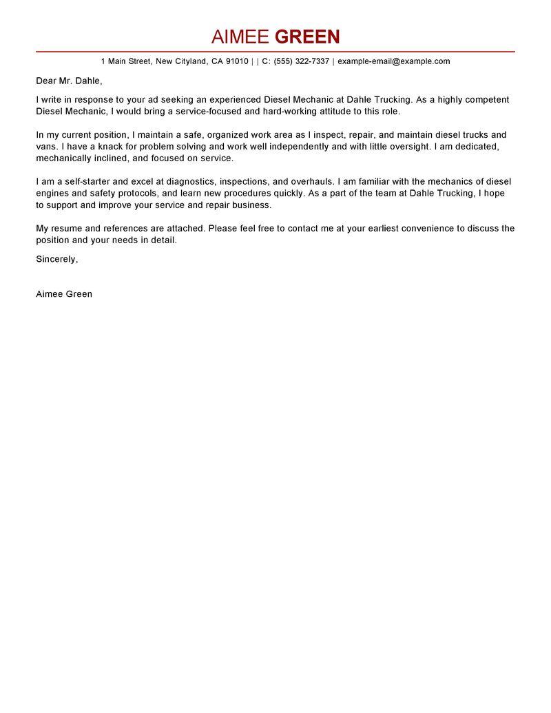 Leading Professional Diesel Mechanic Cover Letter Examples