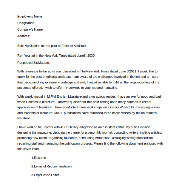 Sample Editorial Assistant Cover Letter Template 6 Free