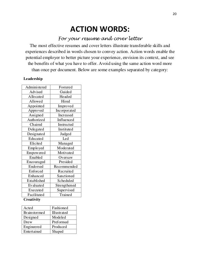 Action Verbs For Resumes And Cover Letters