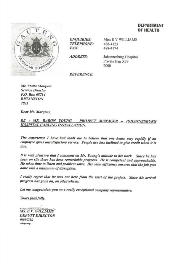 Department Of Health Reference Letter