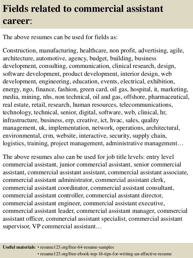 You can ref more useful materials for commercial assistant job application such as commercial assistant interview questions and answers commercial assistant resume samples commercial assistant job description at the sidebar.